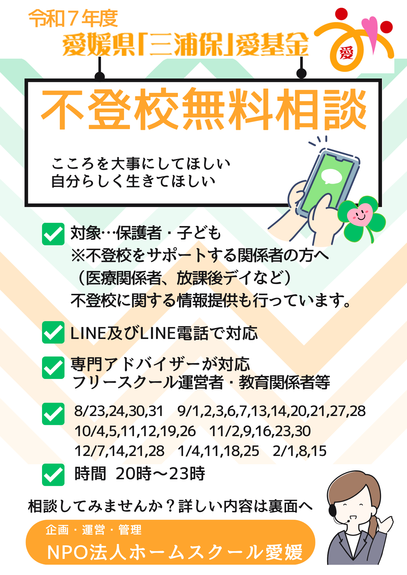 令和7年度「不登校無料相談」愛媛県「三浦保」愛基金